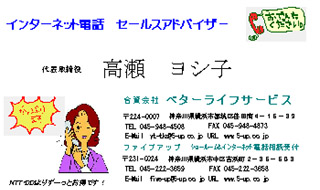 | お客様の版下データはすべてコンピューターに保管しております。弊社で作成した名刺を見本として添付し、台紙の色、注文数量をFAXでご連絡下さい。折り返し確認後、ご用意致します。 |